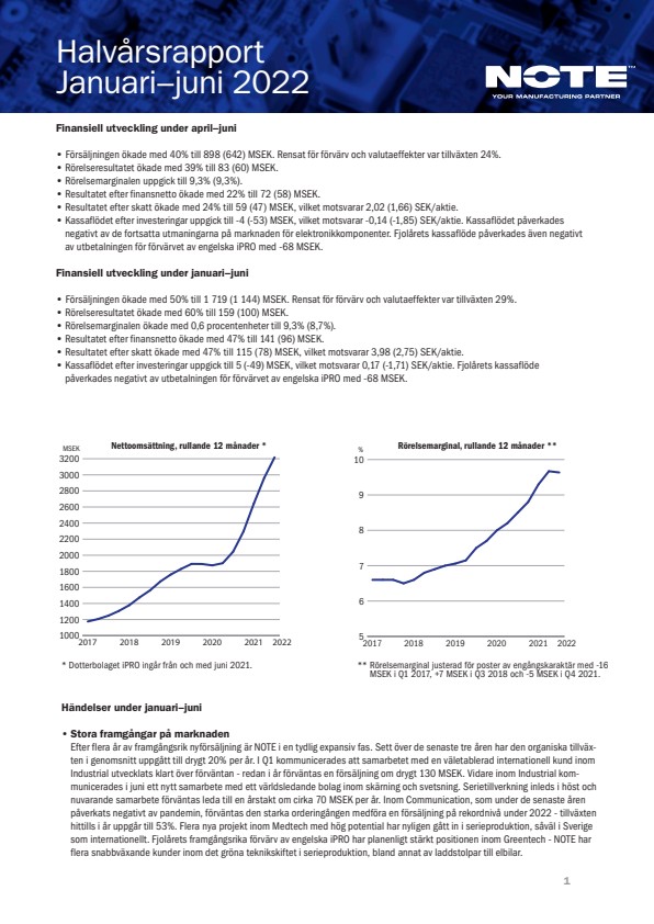 NOTEs halvårsrapport januari-juni 2022